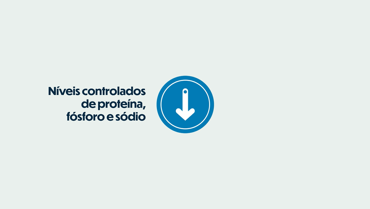 - Níveis controlados de proteína, fósforo e sódio