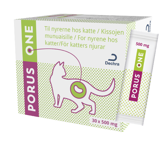 Os Adsorventes com capacidade para reter as toxinas urémicas e os seus precursores no intestino podem ser benéficos. O Porus One da Dechra para gatos é um adsorvente composto por Renaltec, um novo composto com microporos que adsorve os precursores das toxinas urémicas e impede a sua absorção pelo sangue.