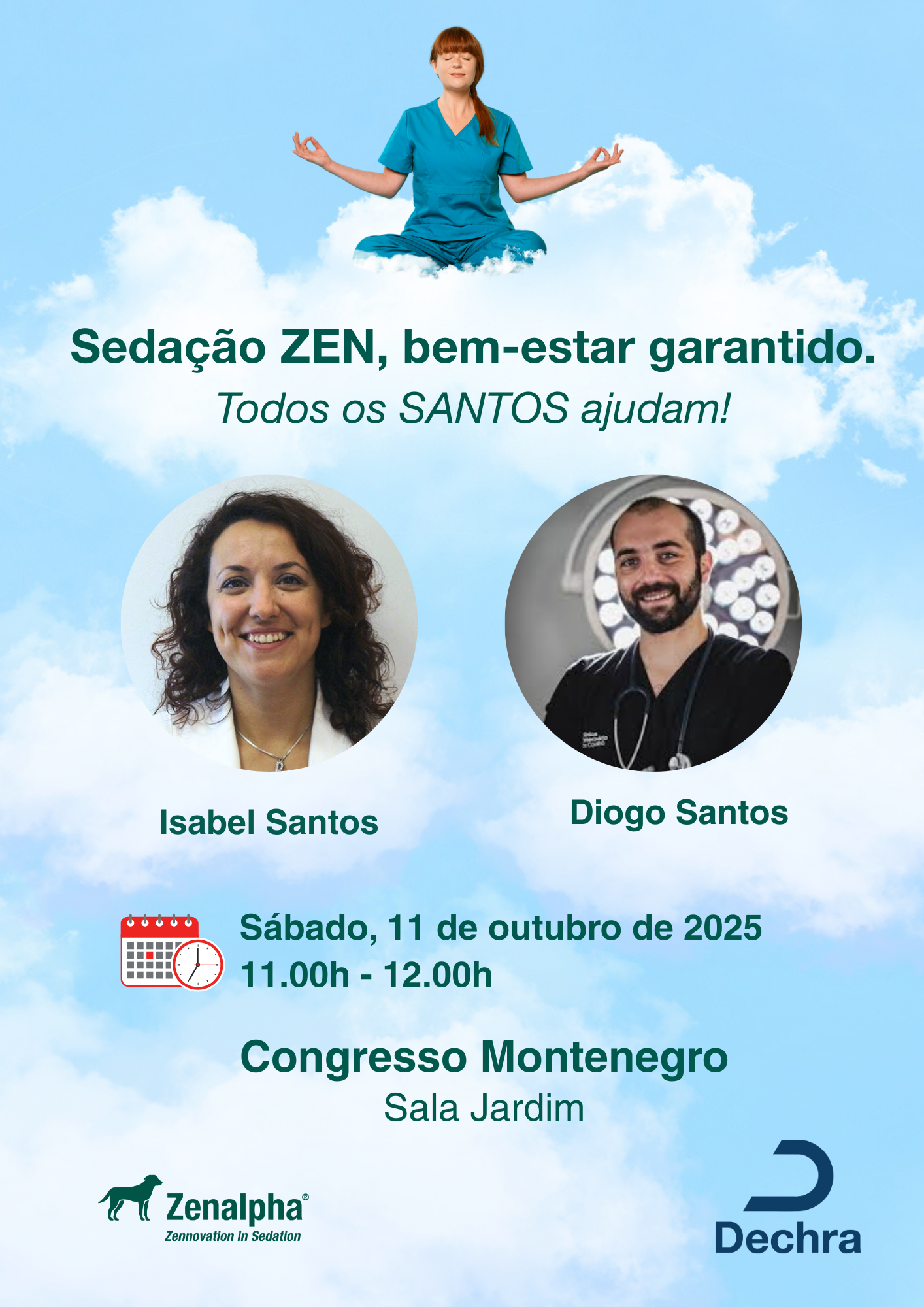 Dois olhares complementares sobre a sedação canina: a visão da etologia, com a Dr.ª Isabel Santos, e a perspetiva da anestesia, com o Dr. Diogo Santos. Juntos, vão mostrar como a sedação pode ser uma aliada da excelência clínica, do bem-estar animal e da segurança das equipas.