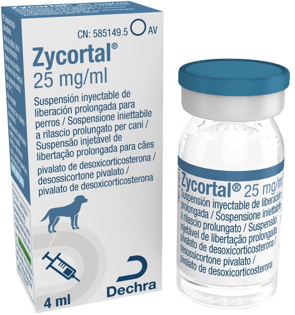 Zycortal é uma injeção mensal que substitui a aldosterona. Ele contém pivalato de desoxicortona (DOCP), que funciona de forma semelhante à aldosterona e demonstrou controlar os eletrólitos de forma mais eficaz do que a fludrocortisona.