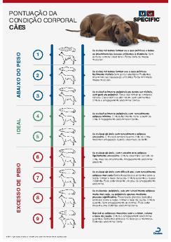 - Mostrar ao tutor como avaliar a condição corporal do seu animal. Para além disso, existem agora indicadores da condição corporal na embalagem de muitos produtos de alimentação para animais de companhia, para ajudar os tutores a avaliar facilmente o peso do seu animal.